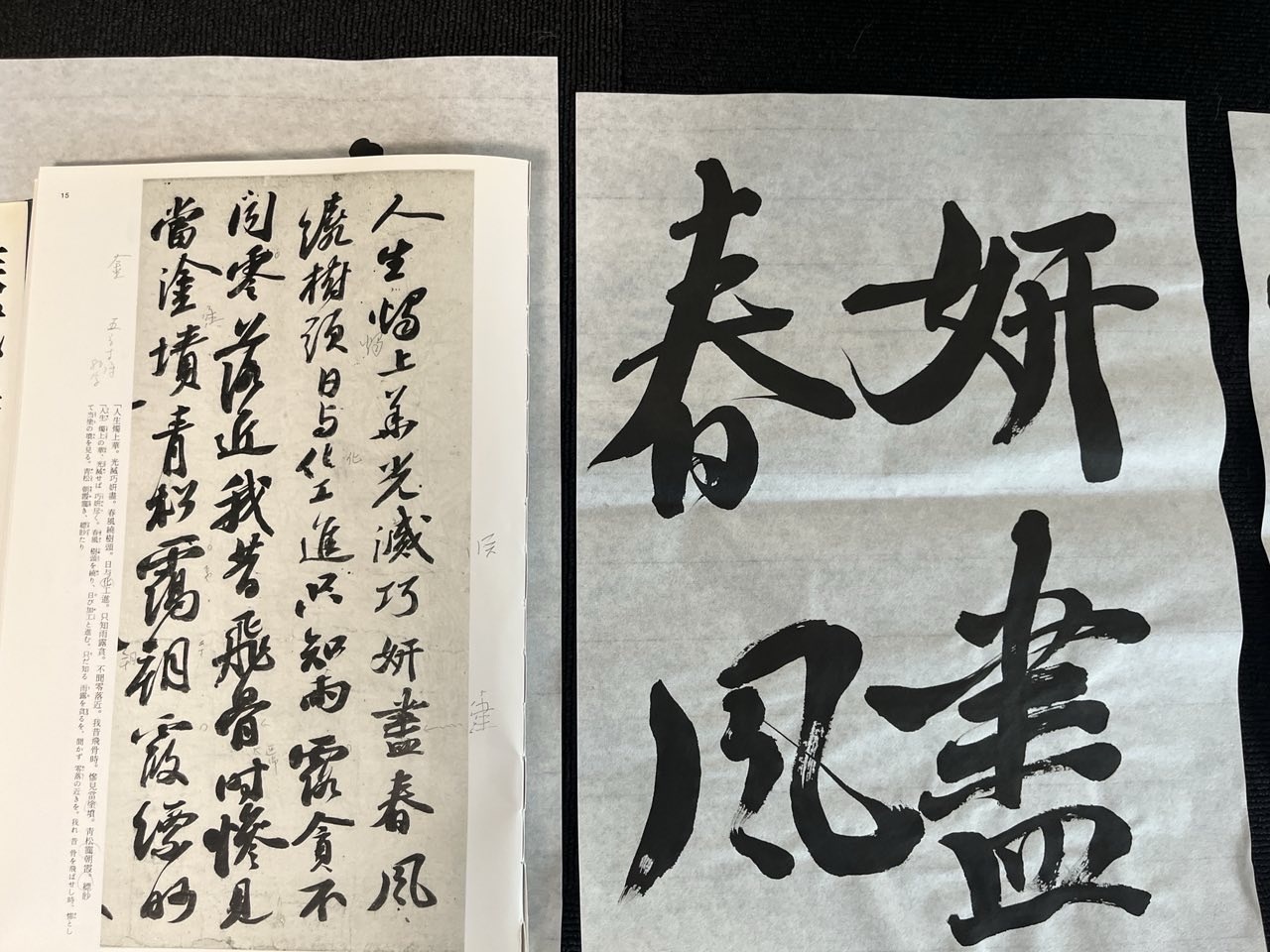 書道教室 29May2025 書道は大人も子供も大事ポイントは同じ~「宋人の書は意をとる」臨書 越谷市の書道教室、川口市東川口の書道教室 書の庭です☆彡 (浦和美園地区、越谷レイクタウン地区からも通っていただいています) 蘇軾(そしょく)「李太白仙詩巻」を臨書 専門科授業で蘇軾(宋)を臨書📘 唐から宋にかけて書風、筆、書法が大きく変化したことを学びました。 「宋人の書は意をとる」 意とは、気持ち、精神的なところ。蘇軾の精神て?て思い巡らせながら臨書してみた😳 晋は気品、唐は技法、宋は気持ち を大事にしてきたとのこと。児童書でも同じですね🫢 書道教室 書道教室・大人の部~臨書「風信帖」の勉強~ 特訓の成果あり!~みるみる上達~ 関連記事一覧 栄光 書の庭のチラシが出来ました~新規募集~ 模範生の誕生 書初め誌上展表彰式 同人書作展2025を終えて 全国コンクールに取り組みました